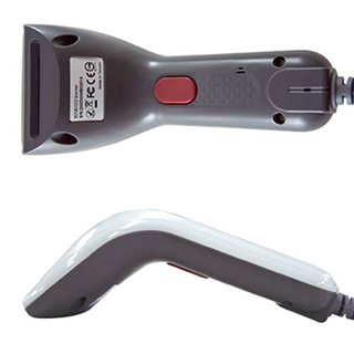 タッチ式のバーコードリーダーは、バーコードに接触するかしないか程度の距離で読み取りを行います。 |