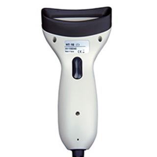 タッチ式のバーコードリーダーは、バーコードに接触するかしないか程度の距離で読み取りを行います。 |