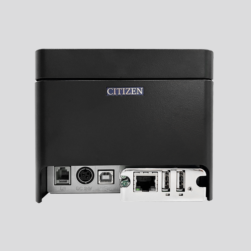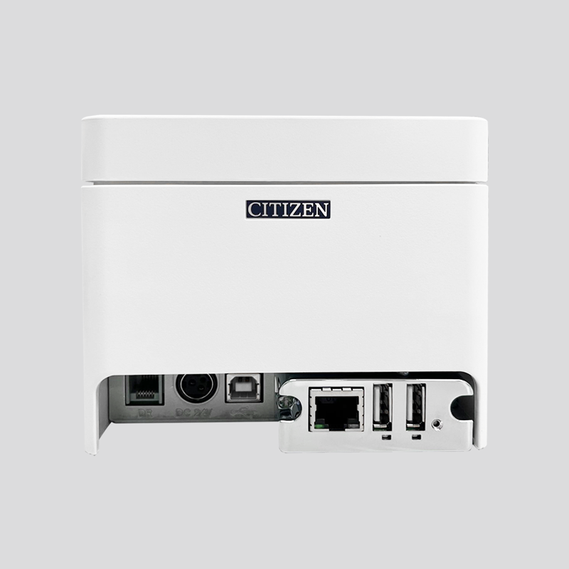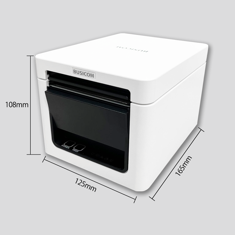 本体サイズは3インチ (80mm) 対応モデルで業界最小クラスとなる、幅125 × 奥行165 × 高さ108 mm。レジ周りの省スペースに最適です。