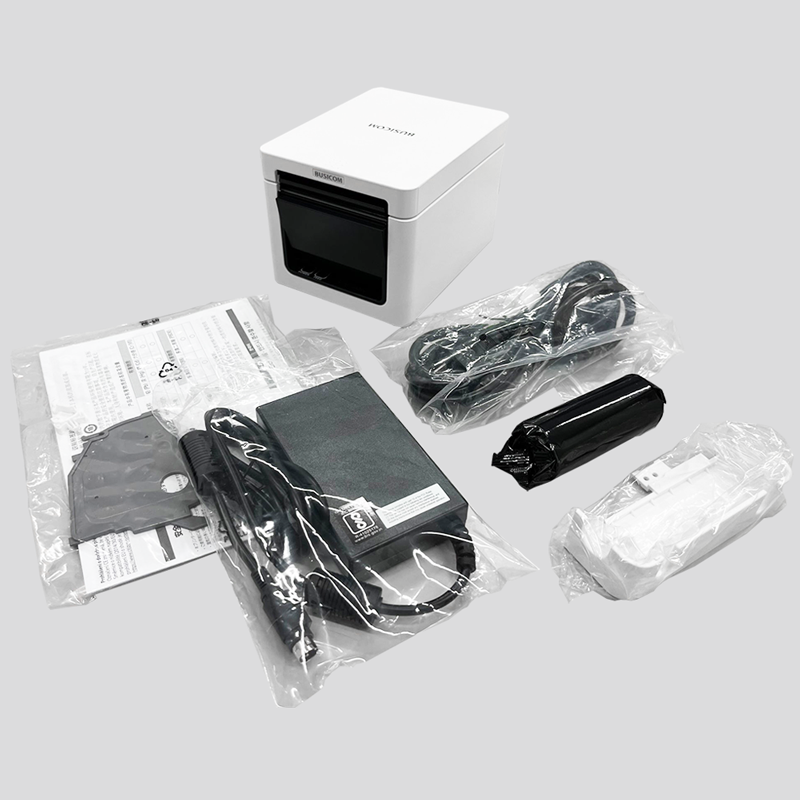 同梱品 | ACコード、サーマルロールペーパー お試し用、ACアダプター、 クイックスタートガイド、パーティション、ケーブルカバー |
