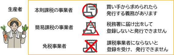 産地直売所(委託販売)では、インボイスを生産者の代わりに直売所の運営事業者が発行することができます。