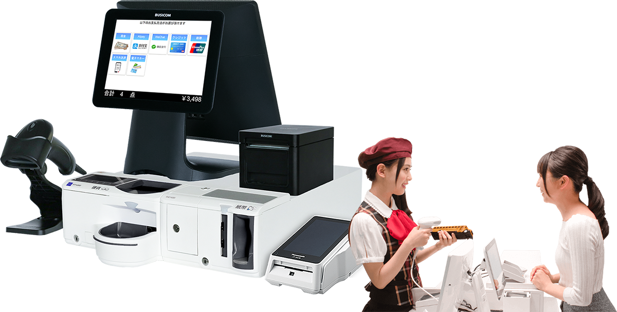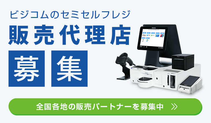 ビジコムのPOSレジには、セミセルフレジとしてご利用いただくための便利な機能が標準搭載されており、初めての導入でも安心してお使いいただけます。