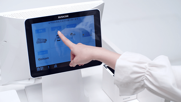 お客様に会計方法を選んでいただくため、操作しやすいタッチパネル式のモニターをお客様側に設置しています。スタッフは販売処理までを行い、その後の支払い方法の選択から決済までは、お客様ご自身でスムーズに操作していただけます。