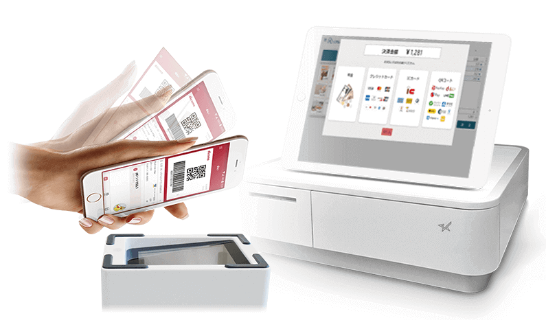 お客様のスマホ等に表示されたバーコードを、レジのバーコードリーダーで読み取るだけで決済が完了できます。