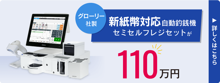 グローリー自動釣銭機付きPOSレジセットが お得に導入できます。