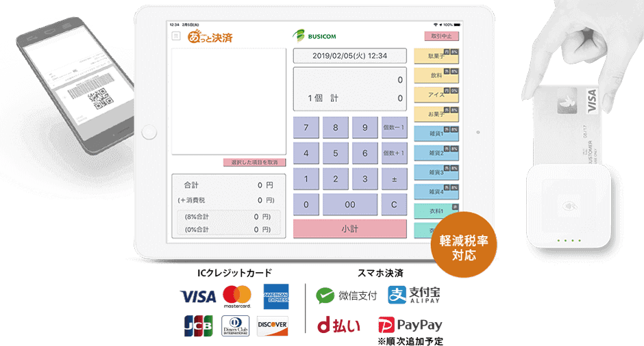 さらにスマホ決済・クレジットなど多彩な決済がご利用でき、スマートな販売業務が完了します。