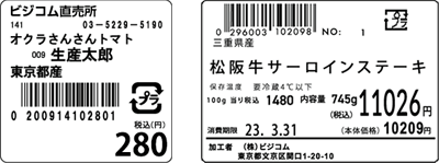 また、専用のラベルプリンターを使うことで値札などに貼れるシールタイプで出力できます。専用プリンターは感熱タイプとサーマルタイプを選択できるため、日焼けや照明などによる印字かすれにも対応できます。詳細についてはお問合せください。