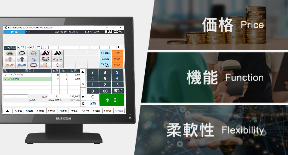 BCPOSは価格・機能・柔軟性のバランスが取れるPOSレジです。