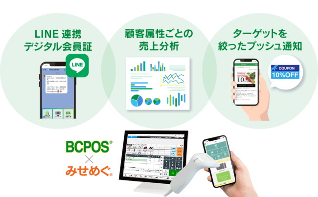 BCPOSをご利用であればLINEミニアプリ「みせめぐmini」のデジタル会員証機能を完全無料でお使いいただけます。