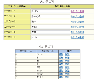 例えば、サイズM(ホワイト・ブラック・レッド)サイズL(ホワイト・ブラック・レッド)のように大小のカテゴリで登録可能。