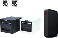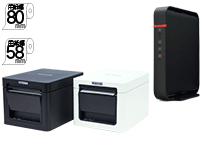 会計用レシートプリンターとは別に、BCPOSのハードウェア構成に、下記「プリンター」と「ルーター」を追加する事で、調理伝票用セカンドプリンターの追加がおこなえます。費用についてはお問合せください。