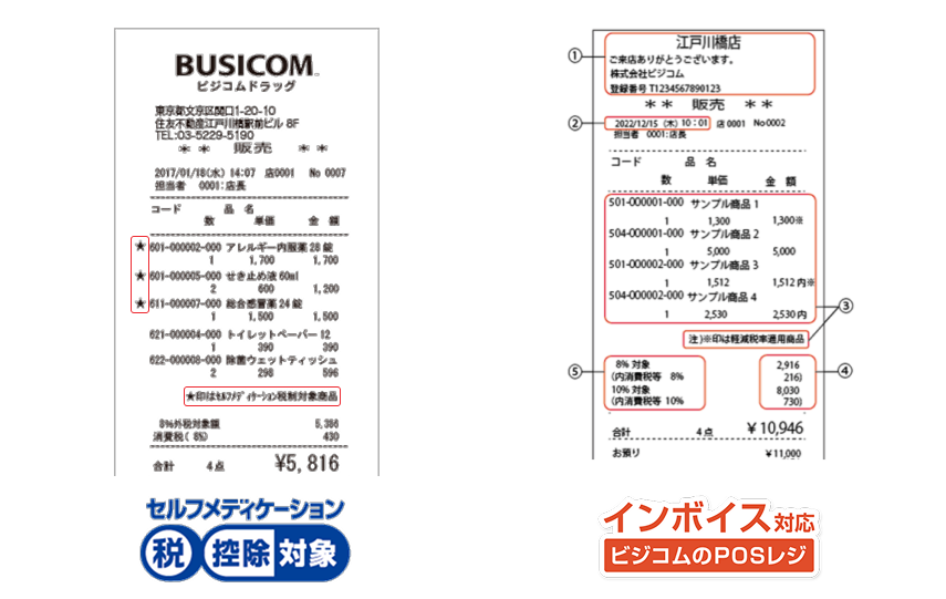 セルフメディケーション税制に対応しており、対象医薬品の販売時にレシートに★印を自動印字して「控除対象」であることを明示します。