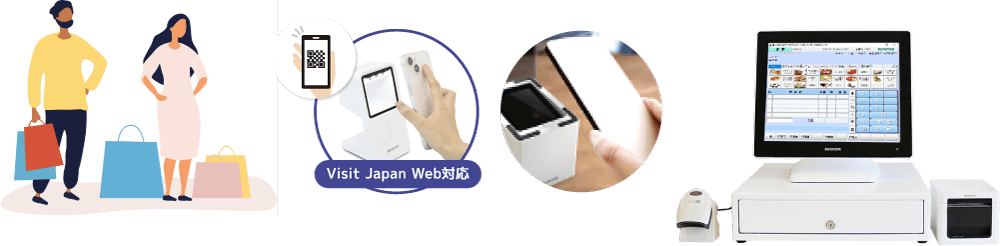 POSレジ1台で免税販売から免税データの送信までシームレスな運用を実現。お店とお客様の負担を軽減し、免税データの作成・送信を最大限短縮します。