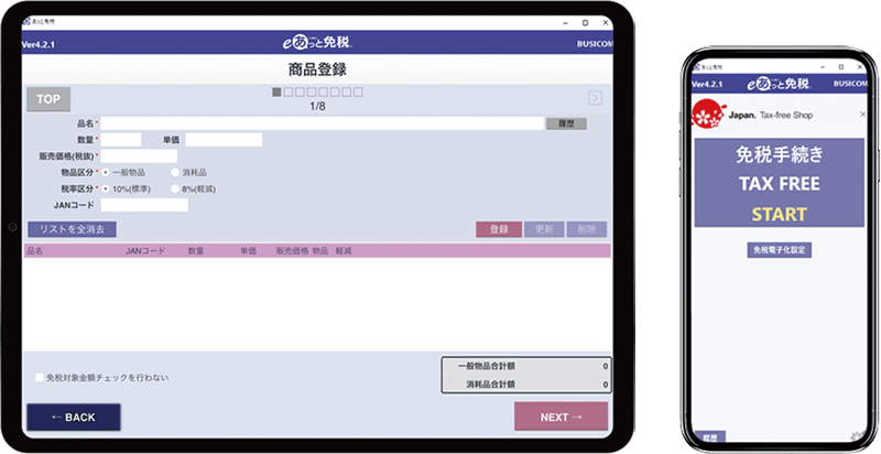 BCPOSと連動して免税電子化に対応できる「eあっと免税」はアプリ単体でのご利用も可能です。