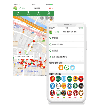 • GPS・地図・業種など各種カテゴリーで簡単にお店情報を表示