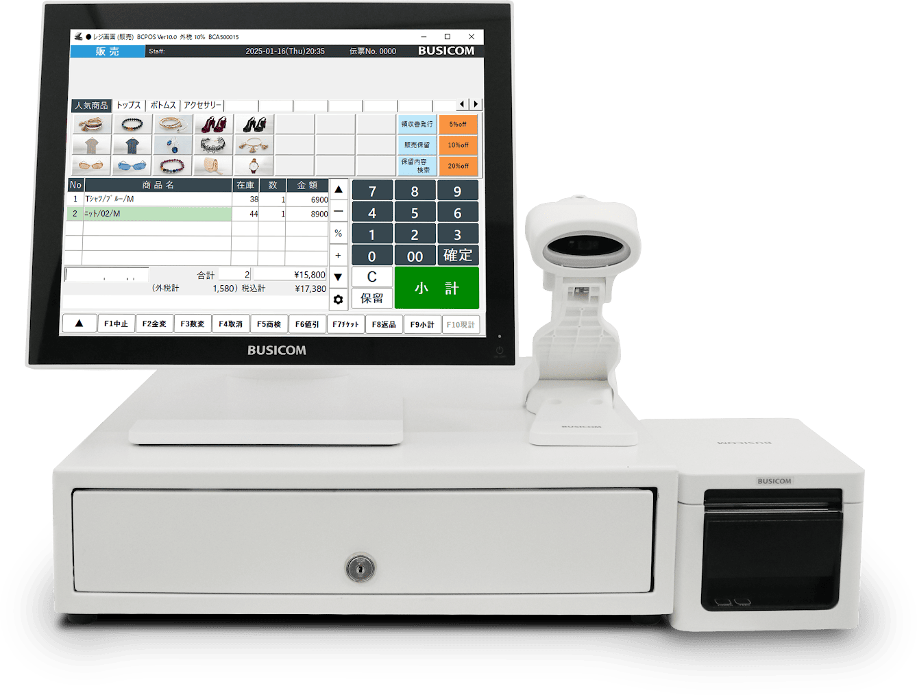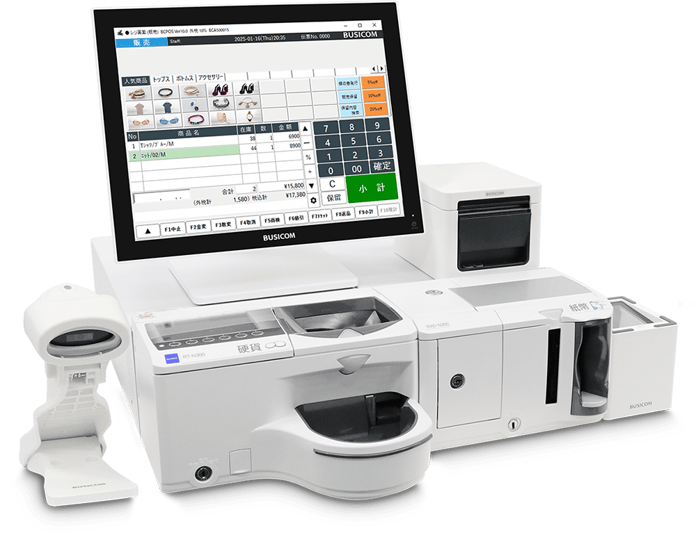 POSレジとは、お客さまに商品を販売した際に生じる金銭のやり取り等の情報を、販売した時点で情報を記録・集計するシステムを完備したレジのことです。