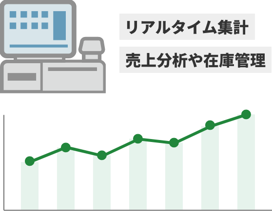 現在のPOSレジの多くは、販売した時点での情報を記録・集計するだけに留まらず、記録・集計したデータからあらゆる分析や管理を行うこともできるようになっています。