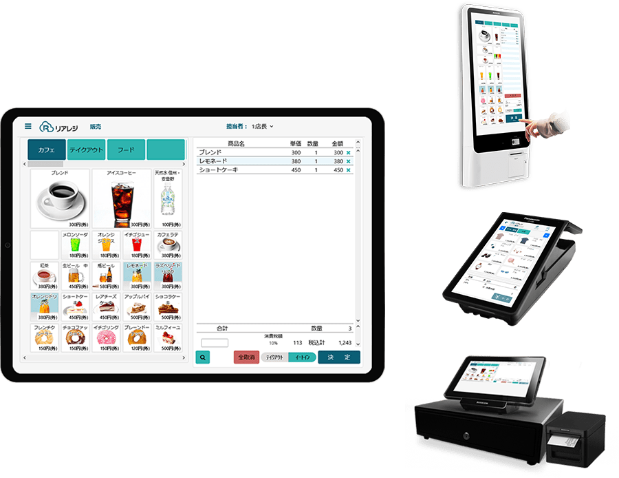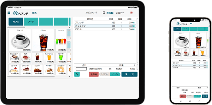 「リアレジ」はどこでもすぐに使えるクラウド型POSレジ。