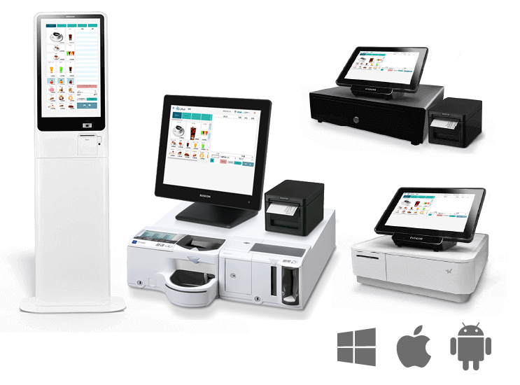 例えばタブレット・スマホや決済端末にアプリをインストールしてPOSレジとして使用することや、自動釣銭機を使ってセルフレジやセミセルフレジとして使用できます。また、券売機としてや、キオスク端末でブラウザやアプリを利用したPOSレジなどで利用することも可能です。