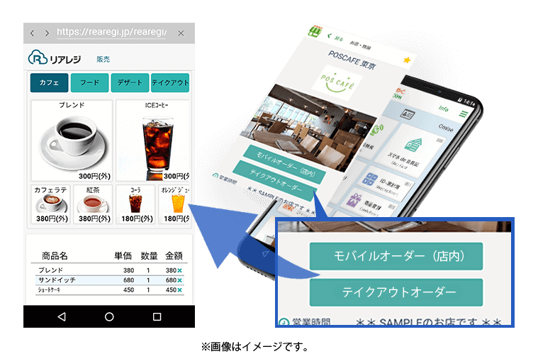 セルフレジをはじめ、レジはスタッフが入力するものとは限らなくなりました。リアレジでは、無料集客アプリ「みせめぐ」 より、店舗ページからお客様が直接注文することも可能。お客様がスマートフォンで商品をオーダリング、決済を完了させます。注文情報は、キッチンモニターへ到着し、商品のご用意に集中できます。モバイルオーダー、テイクアウトオーダーは店内でも・お持ち帰りでも様々なシーンでお使いいただけます。