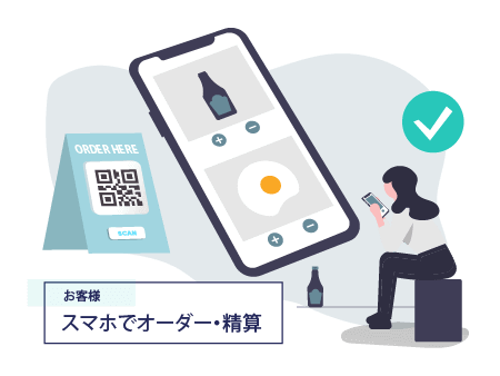 お客様ご自身のスマホに店舗メニューを表示し、商品注文と決済が完了します。レジ待ちやオーダー待ちの不満が解消されるので、スタッフの業務改善にも。オーダーと併せて決済が完了しますので、レジで決済業務を行っていただく必要もありません。