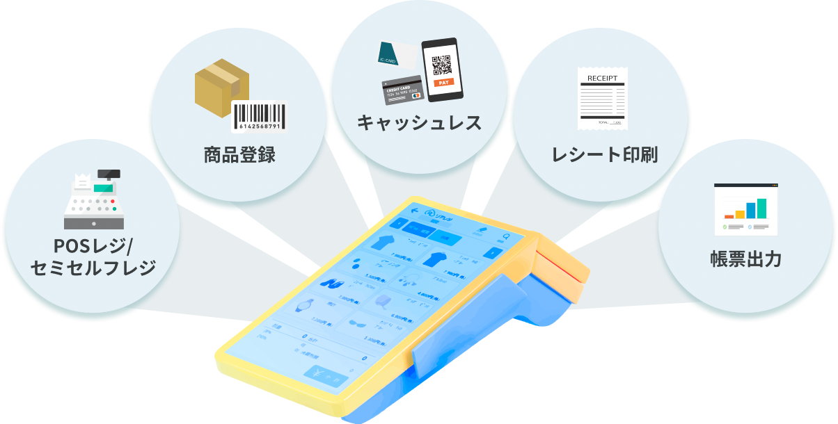 「リアレジ」は、決済端末単体で動作する高機能・省スペースなPOSレジアプリ。