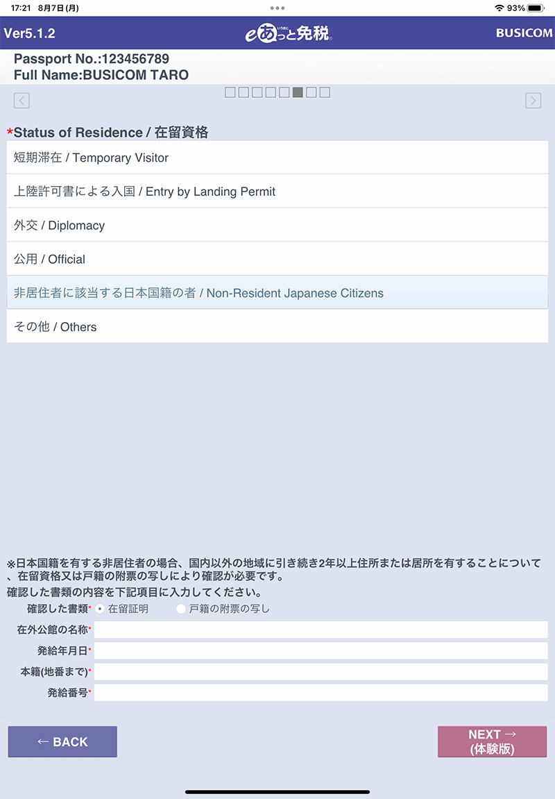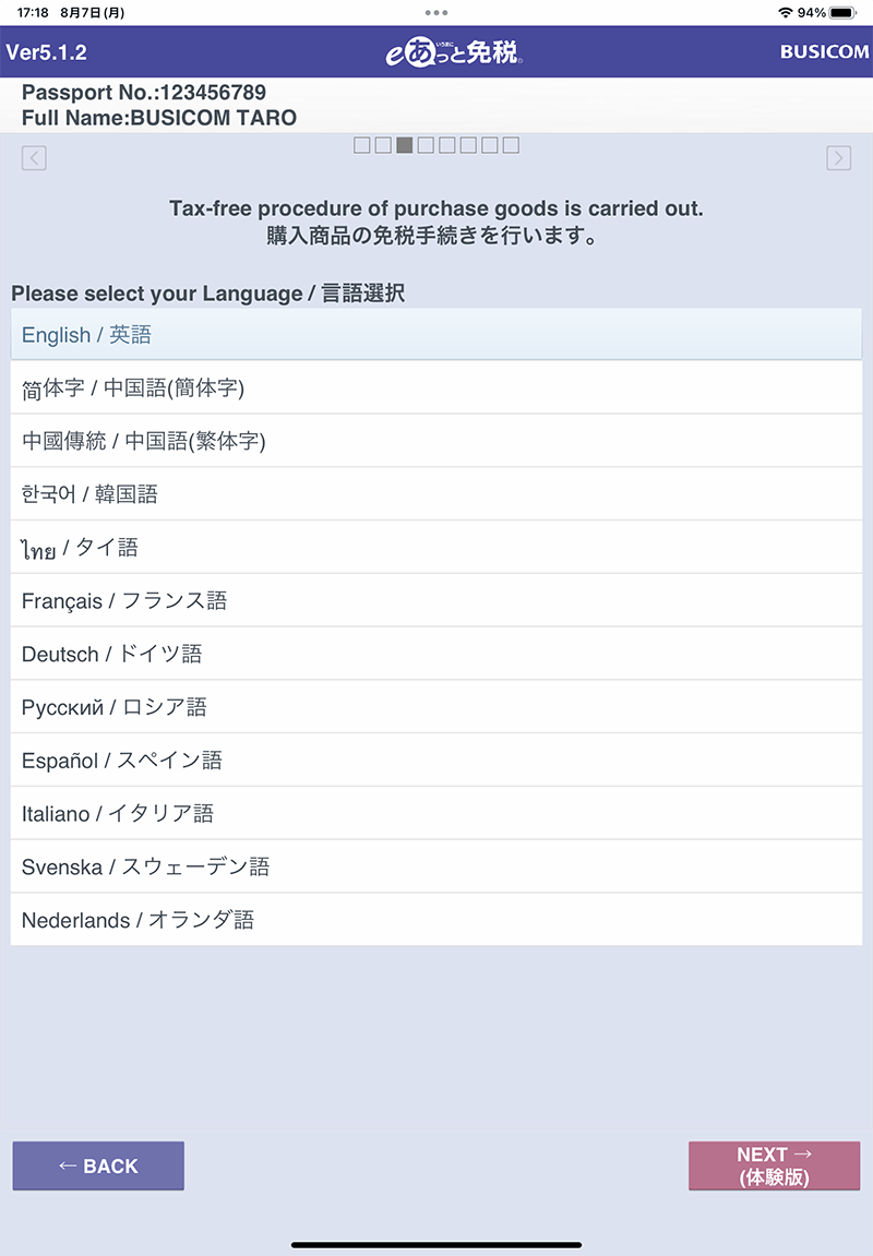 パスポート情報読み取り /旅券の種類選択 /入国日・入国地選択 / 出国日・フライト便名選択 /在留資格選択 /運送事業者選択 / 多言語設定 /購入記録表履歴表示 /日報 /月報表示 /パスワード設定 /サーバーデータ連携(TenpoVisor連携) /CSV出力 /POSデータ連携 (CSV取り込み) /データバックアップ・リストア /各種選択項目登録 /免税電子データ作成・送信 /OCRリーダーアプリ連携(iOS版のみ) /Visit Japan Webサービス