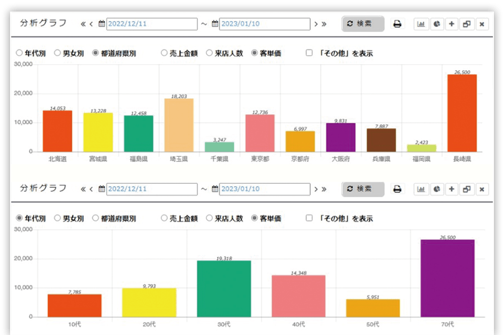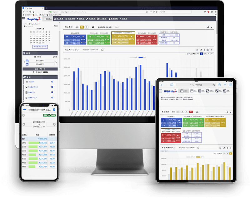 TenpoVisorに集めたPOSレジデータを分析や各種管理に活用いただけます。