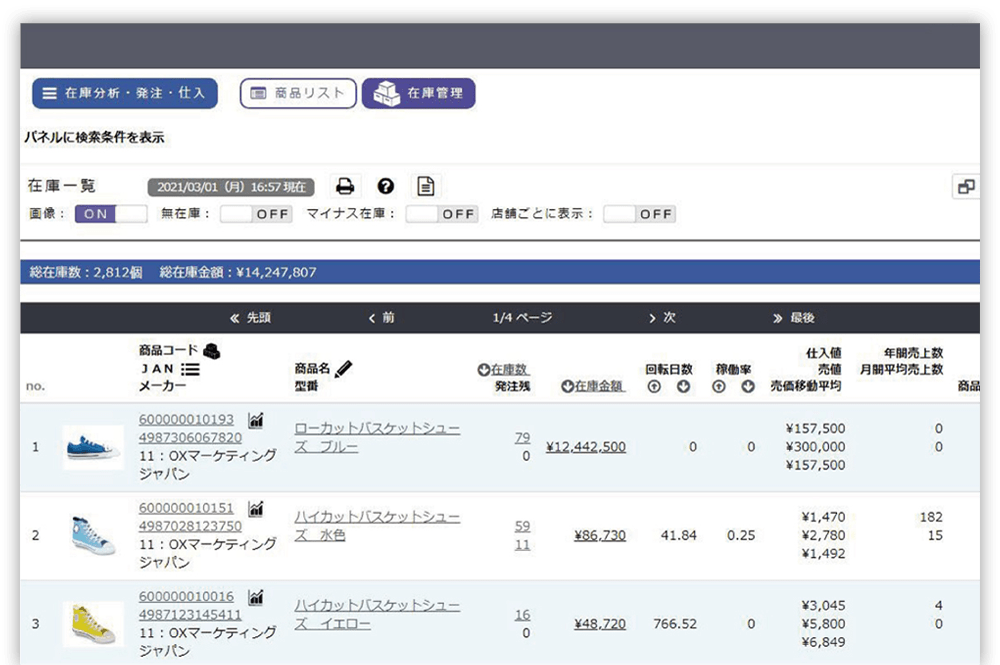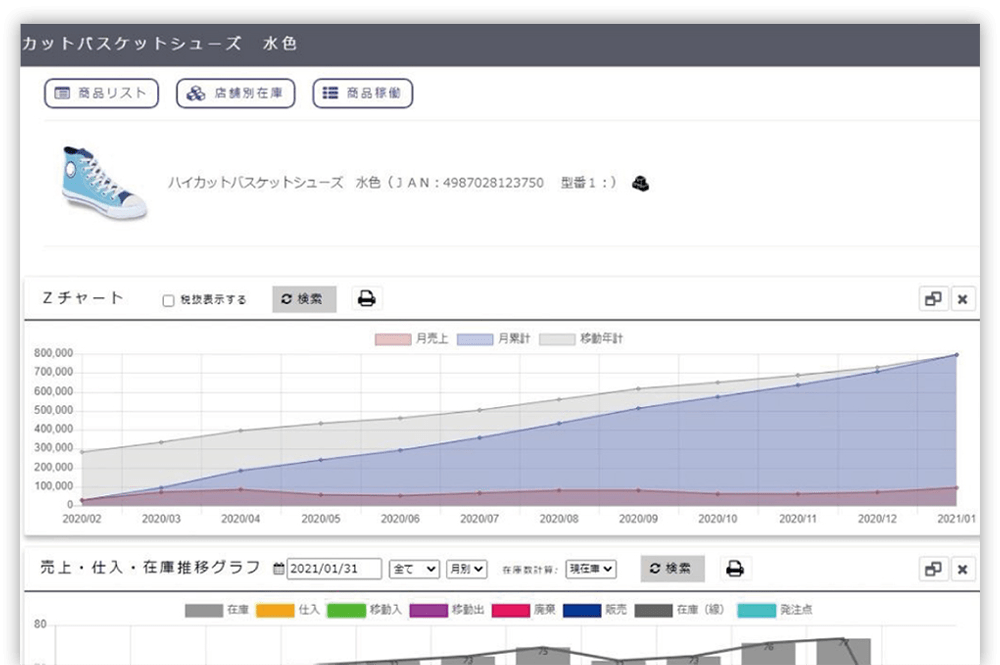 全店舗の売上・在庫などのPOSデータをクラウドに集約し、ブラウザやアプリで確認できます。売れ筋商品や在庫状況などの確認ができるほか、全店舗の情報共有にご利用いただけます。