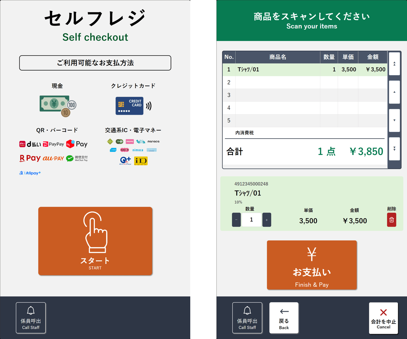 - レセコンの調剤明細書に印字された処方箋番号または患者番号のバーコードを読み取って、会計内容を直接呼び出せるようになります。患者様ご自身によるセルフ会計にもご利用いただけます。