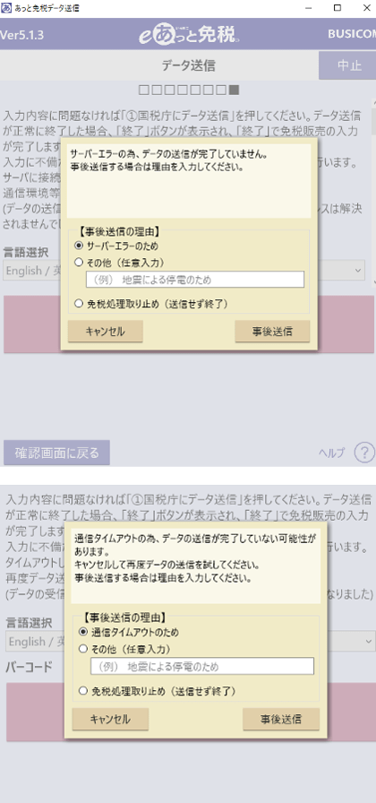 データ送信できなかったデータを事後送信する際に、ネットワークエラーなどの事後送信理由の入力を選択できるように変更しました。