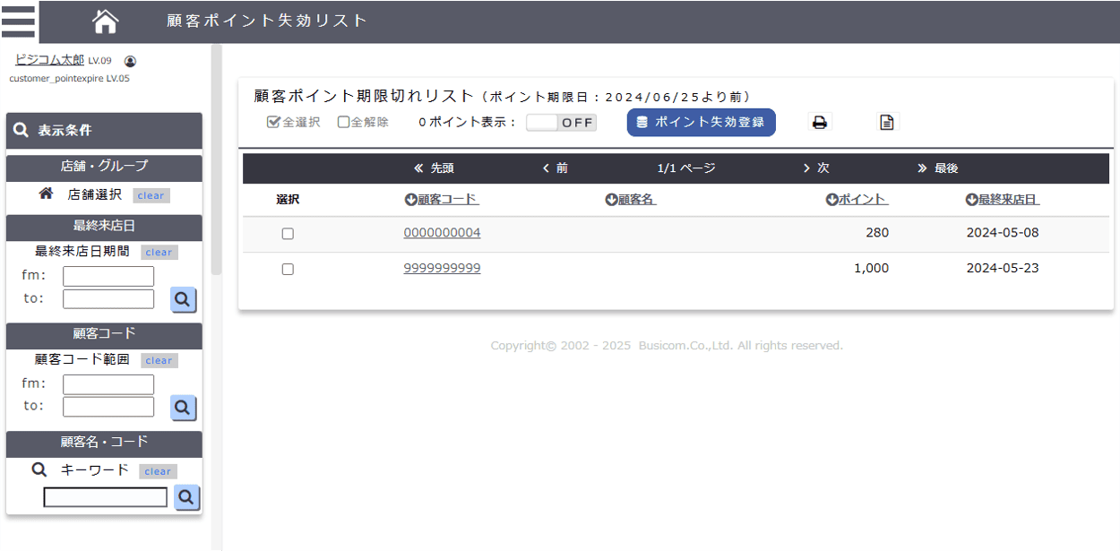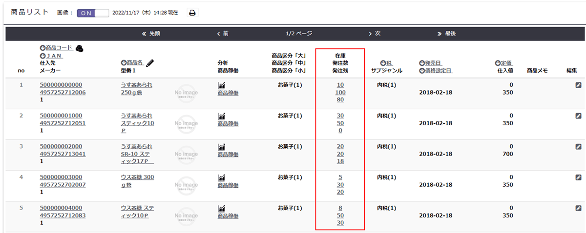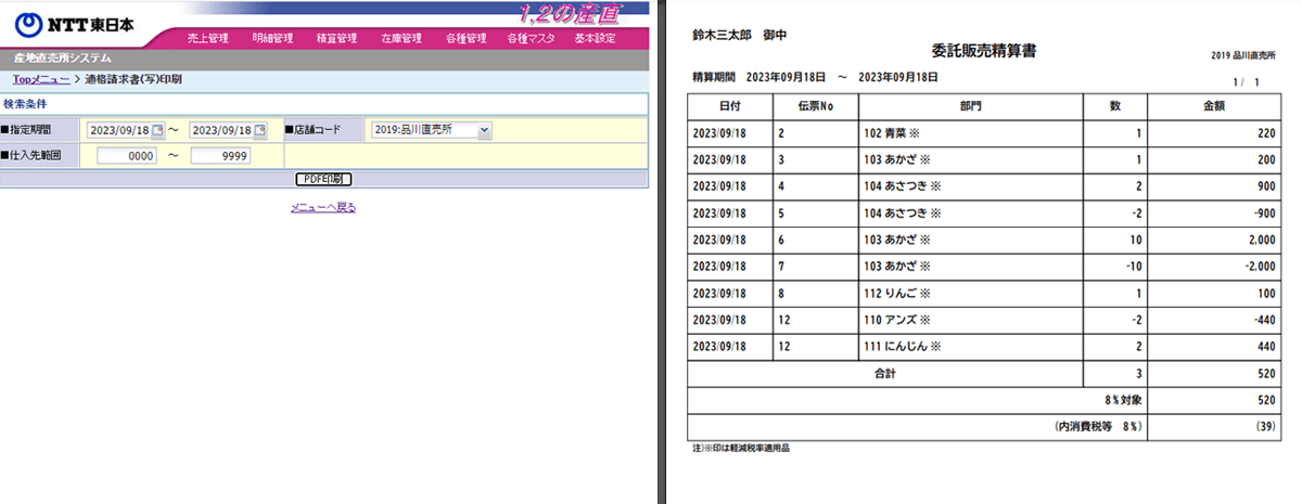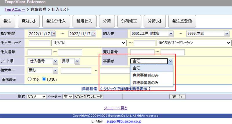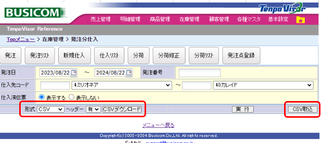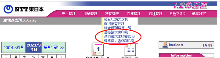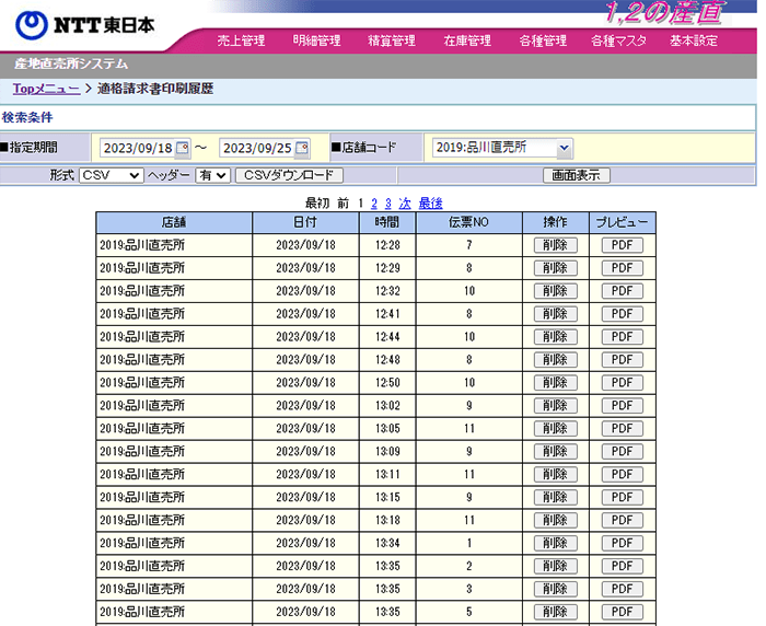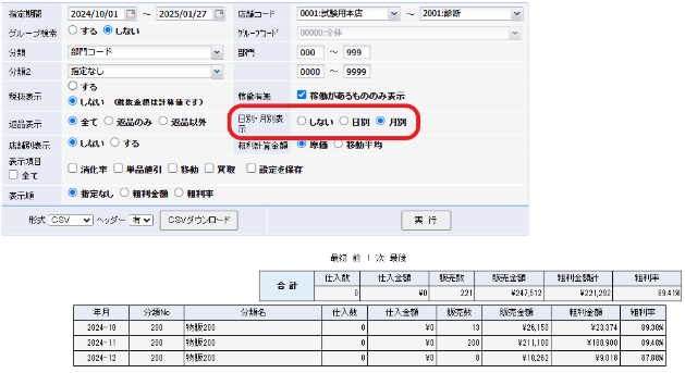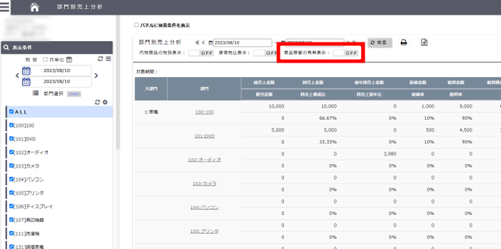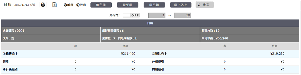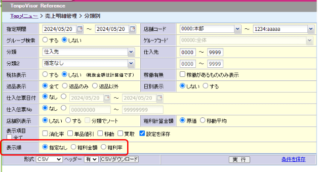 上部メニュー「明細管理」→「伝票・明細情報」→「曜日・時間帯別」