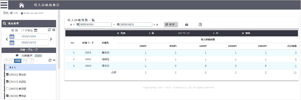 BCPOSで発行した収入印紙の枚数や明細が確認できるようになりました。