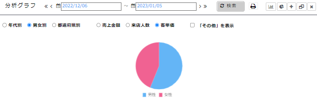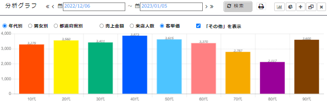 購買情報を顧客の属性(年代・男女・都道府県)別に金額・人数で集計したグラフや商品ベストが 確認・分析できます。その内容をもとに、ターゲティングしたプッシュ通知をすることで、効果的な情報発信ができます。
