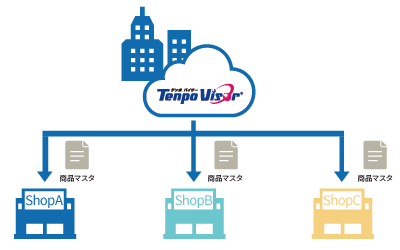 新商品の登録や既存商品の金額変更など商品マスタをTenpoVisorで管理し、店舗のPOSレジへ配信することができます。配信されたデータは自動で取り込みます。本部で商品マスタを一括管理し配信をすることで、各店舗での登録作業や登録ミスなどを減らします。