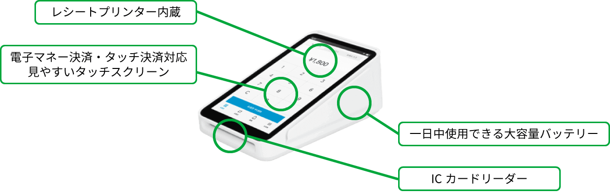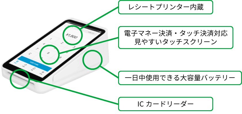 タッチ決済、ICカード、磁気カードの取引が可能。